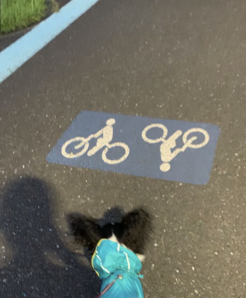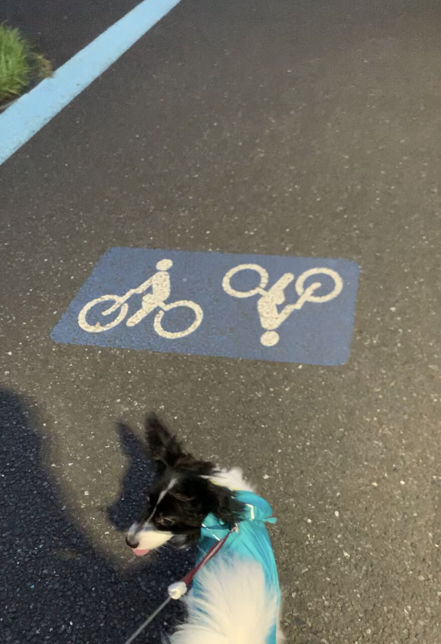 道路の標識に驚き立ち止まるベニート🐾🙂🙃
